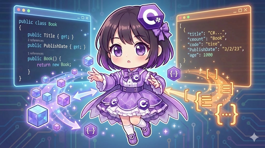 This article explains how to use the standard .NET library System.Text.Json to convert C# objects into JSON strings (serialization) and vice versa (deserialization). It covers practical settings such as preventing Unicode escaping for Japanese characters, automatic camelCase conversion, and “Pretty Print” formatting.