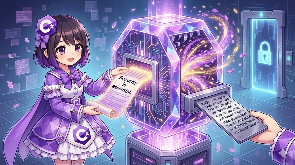 暗号化されたファイルを元の状態に戻す(復号する)には、暗号化時と逆のストリーム処理を行います。 ファイルから読み込んだ暗号データを CryptoStream(読み取りモード)に通すことで平文に戻し、その結果を別のファイルへ書き出します。この処理もストリーム間コピーを利用するため、メモリ消費を抑えながら巨大なファイルを復元できます。