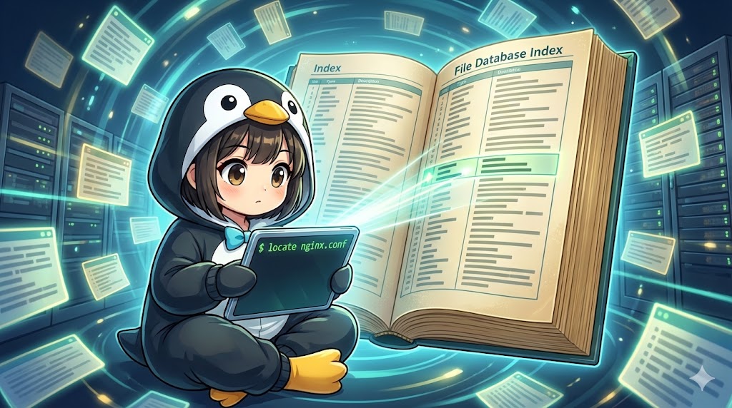 locateコマンドは、システム全体を横断するような広範囲のファイル検索において、findコマンドよりも圧倒的に高速なレスポンスを返します。「設定ファイルがどこにあるか分からない」「あの名前のライブラリが入っているか確認したい」といった場面で、まずはlocateで当たりをつけるのが効率的です。ただし、結果の正確性はデータベースの鮮度に依存するため、直近の作業ファイルを追う場合はfind、既存のシステムファイルを探す場合はlocateという使い分けが重要です。
