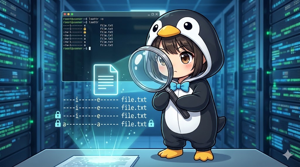 lsattrコマンドは、通常のパーミッション設定の裏側に隠れている「ファイルシステムの特殊属性」を可視化するためのツールです。特に、rootユーザーですら操作を受け付けない「i属性(不変)」や、ログの改ざんを防ぐ「a属性(追記のみ)」が設定されているかを確認する際、このコマンドが唯一の確認手段となります。サーバーのセキュリティ診断や、原因不明の「Permission denied」エラーの調査において、ls -lとセットで確認する習慣をつけることが推奨されます。