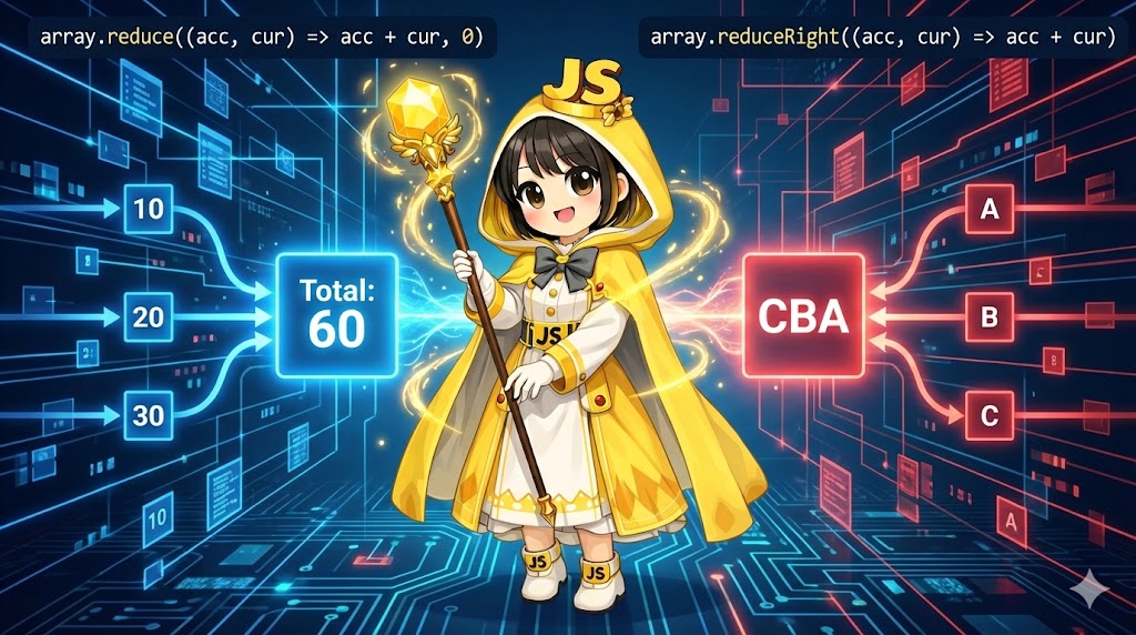 reduceRight | 右から左へ (末尾 → インデックス 0) | 指定がない場合、配列の最後の要素が初期値になります。 |
