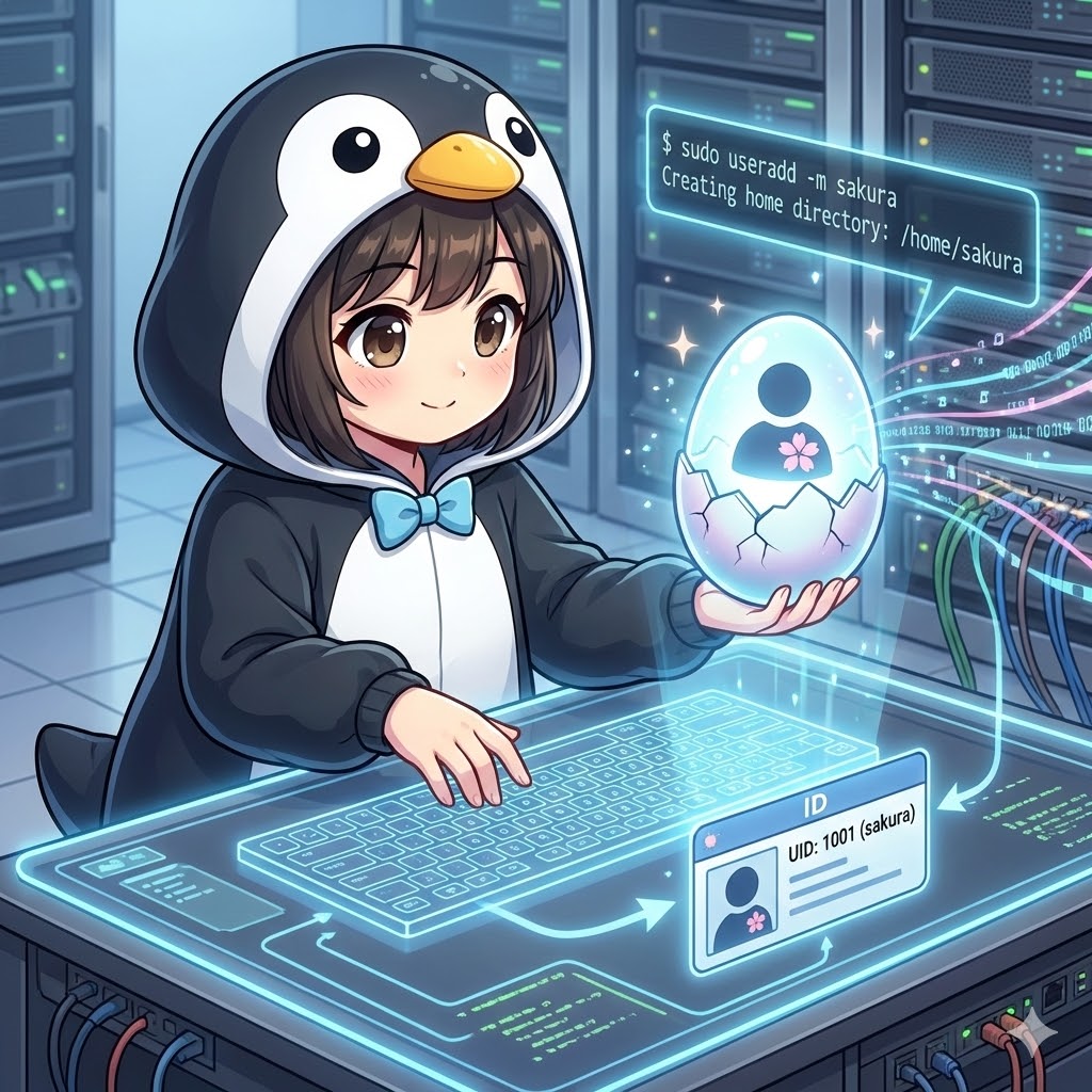 概要 Linuxシステムに新しいユーザーアカウントを作成するためのコマンドです。 アカウント名、ユーザーID(UID)、所属グループ、ホームディレクトリ、ログインシェルなどを細かく指定して作成できます。 注意点として、このコマンドを実行した直後のユー... -
