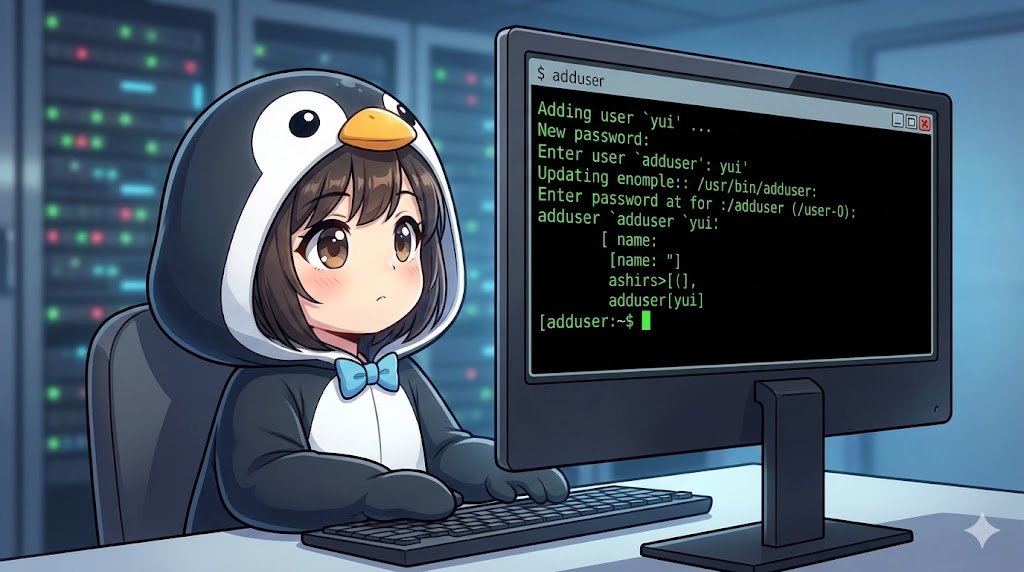 【Linux】adduserコマンドでユーザーアカウントを対話的に作成する