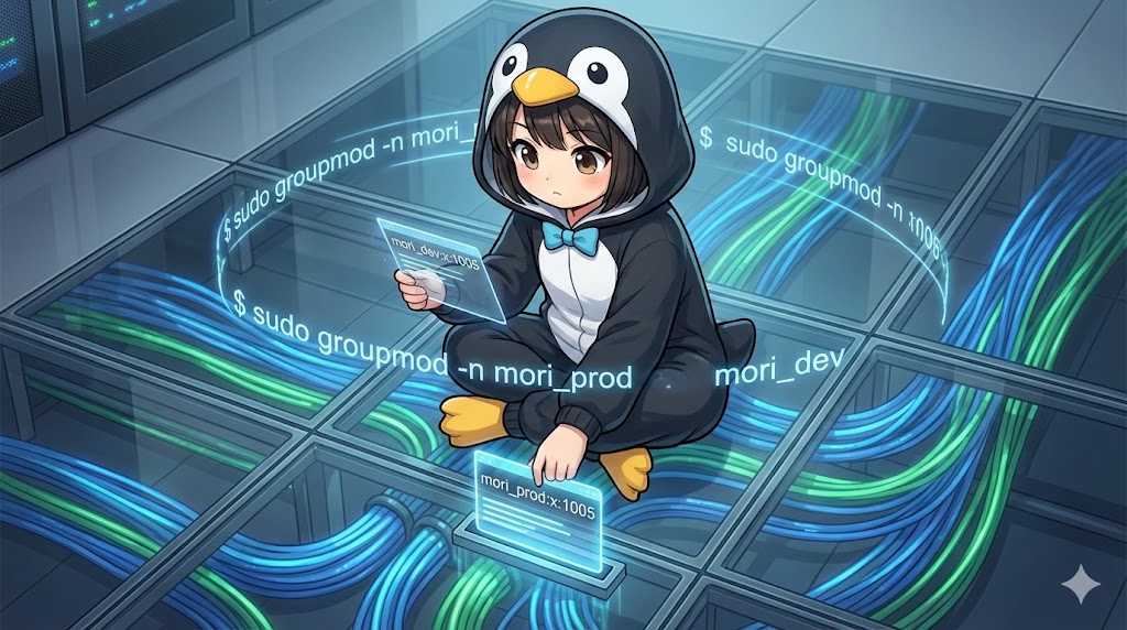 概要 作成済みのグループ定義(グループ名やGID)を変更するためのコマンドです。 組織の名称変更に合わせてグループ名をリネームしたり、システム移行やセキュリティポリシーの変更に伴ってグループID(GID)を振り直したりする際に使用します。 特にGID... -