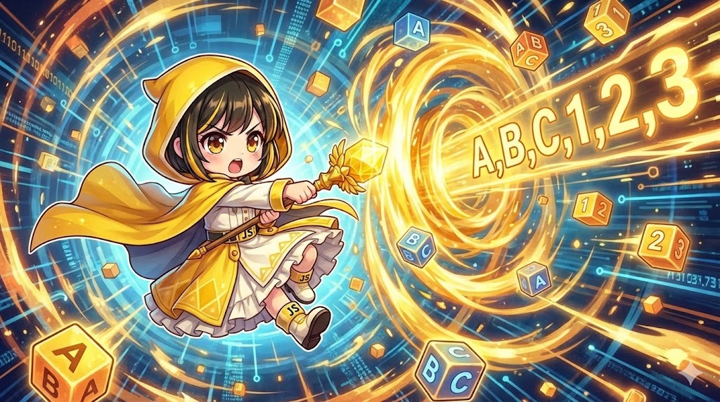 概要 配列として管理されているデータを、CSV形式(カンマ区切り)や特定のフォーマット(スラッシュ区切りなど)の1つの文字列に変換したい場合、join メソッドを使用します。 ループ処理で文字列連結を行うよりも簡潔で、末尾の区切り文字処理なども不要... -