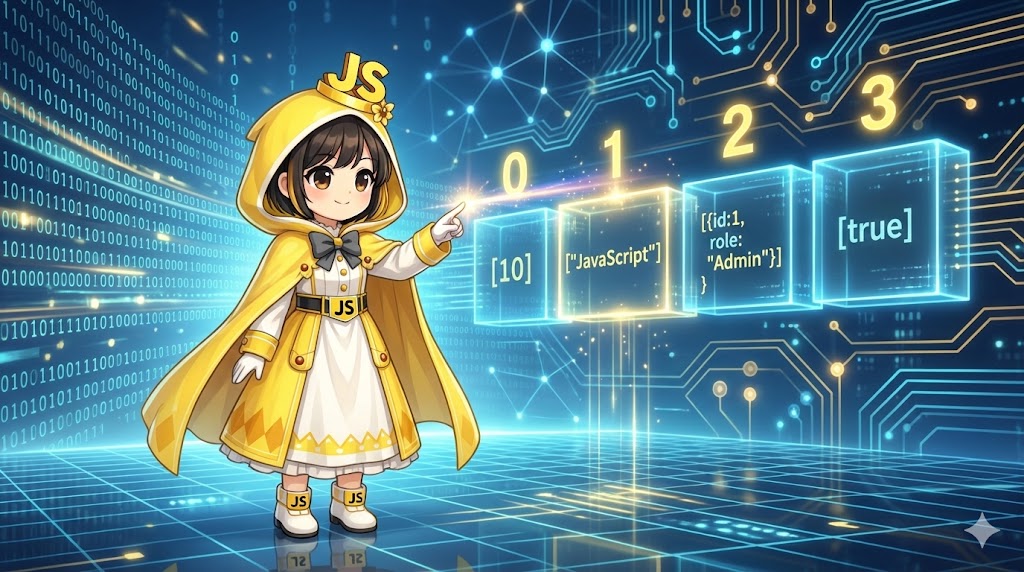 概要 JavaScriptにおいて複数のデータをひとまとめに管理するために最も頻繁に使用されるのが「配列(Array)」です。 本記事では、ブラケット [] を使用した基本的な配列の定義方法から、多次元配列やオブジェクトを含む配列の構築、そしてインデックス番... -