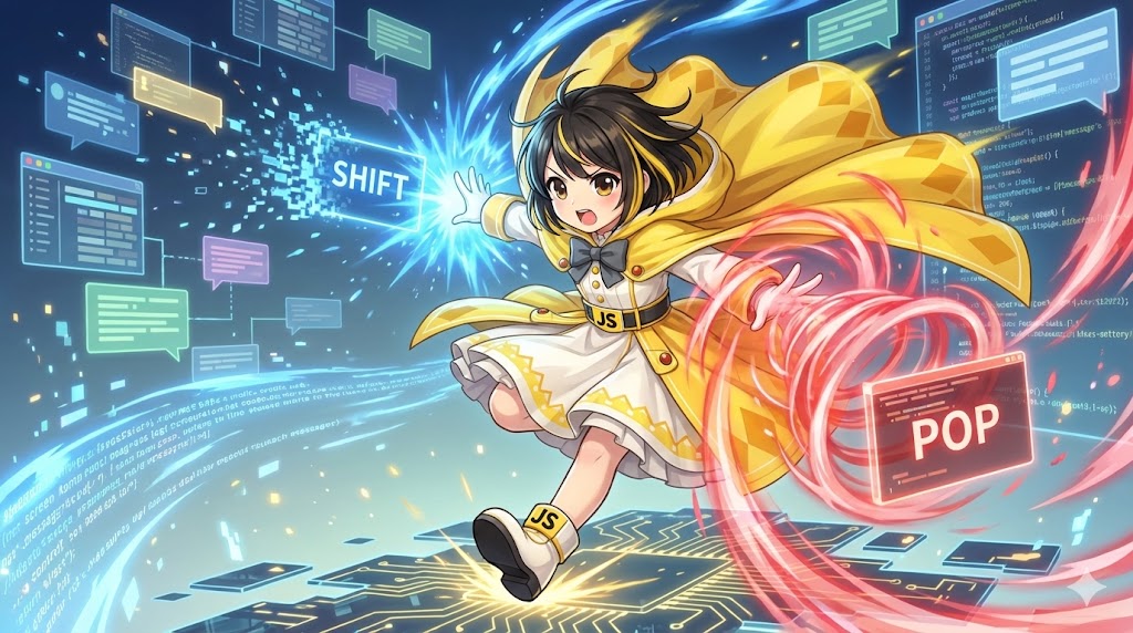 概要 配列データを整理する際、「一番古いデータを捨てたい(先頭削除)」や「直前の追加を取り消したい(末尾削除)」といった操作は頻繁に発生します。 JavaScriptでは、shift メソッドと pop メソッドを使うことで、これらの操作を直感的かつ高速に行う... -